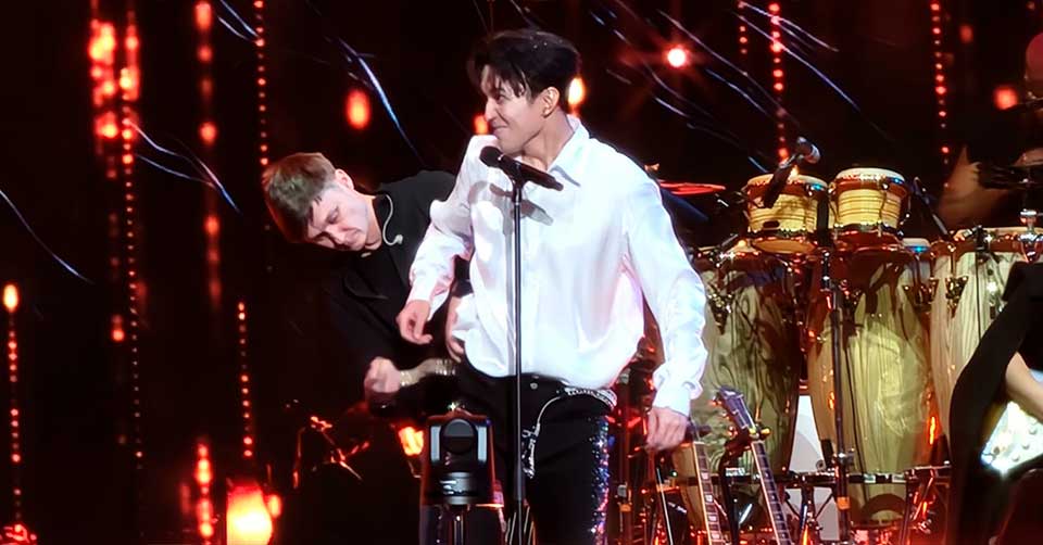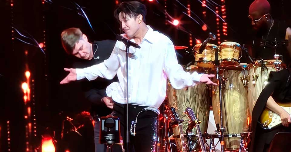 Durante el concierto, Dimash vivió un momento tan inesperado como divertido. En tres ocasiones, su equipo de producción tuvo que asistirlo en pleno escenario debido a un problema con su vestuario: los pantalones que usaba estuvieron a punto de caer, lo que obligó a hacer breves pausas para ajustarlos. Lejos de incomodarse, el artista tomó la situación con humor y elegancia, provocando carcajadas y aplausos del público que celebró su espontaneidad.