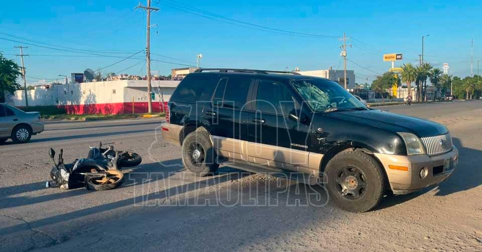 Motociclista chocó con camioneta y resultó lesionado en Ciudad Victoria