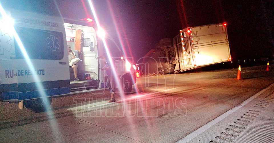 Otra volcadura de tráiler en autopista a Nuevo Laredo
