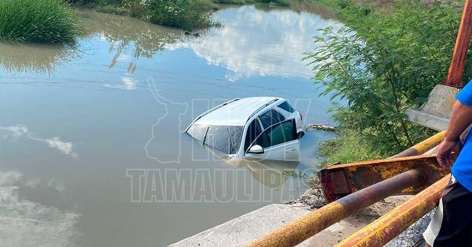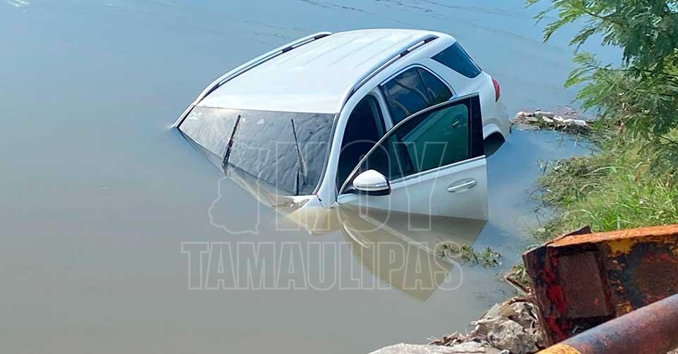 Reynosa, Tamaulipas.- Un aparatoso accidente se registró esta tarde en la colonia Riberas de Rancho Grande, luego de que el conductor de una lujosa camioneta Mercedes Benz perdió el control al realizar una maniobra de reversa y terminó proyectado su unidad contra un dren.