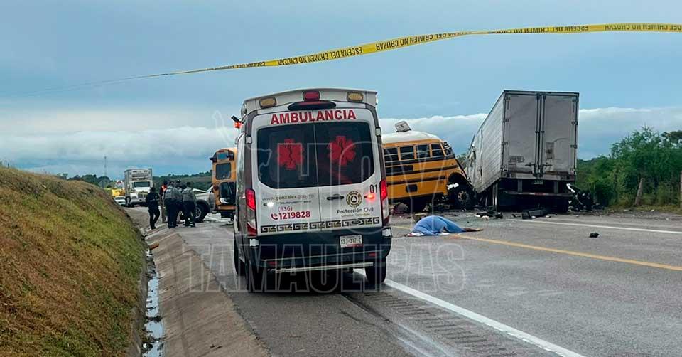El percance ocurrió a la altura del kilómetro 28+200, en el tramo González–Llera de Canales, donde se vieron involucrados un tractocamión, un camión tipo escolar y una camioneta Toyota Tacoma.