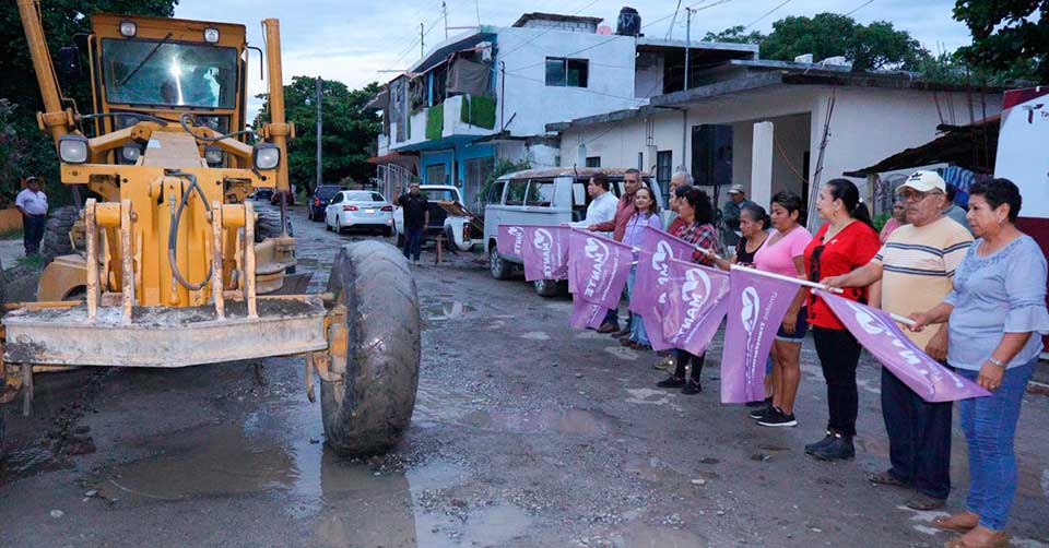El Mante, Tamaulipas. - Con el firme compromiso de seguir transformando los entornos y mejorar la calidad de vida de las familias mantenses, la Presidenta Municipal Patty Chío encabezó el arranque de la pavimentación asfáltica en la calle Alejandro Prieto, así como la ampliación de la red de electrificación en Congregación Quintero.