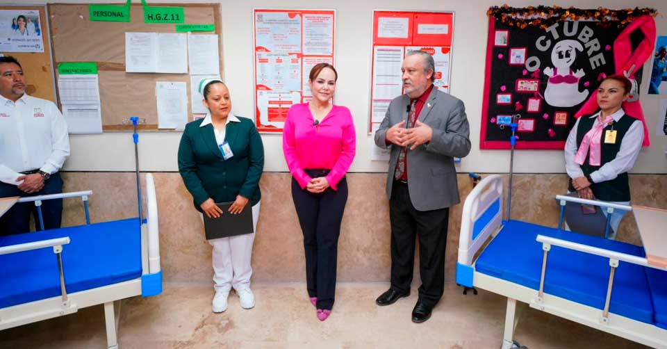 Mientras tanto el doctor José Martinez Martínez, director del Instituto Mexicano del Seguro Social Zona 11, destacó que el gobierno de Carmen Lilia no solo apoya con equipamiento sino que ha estado al pendiente de los requerimiento de la institución como espacios de reforestación, mobiliario a los alrededores para los familiares de los pacientes y actualmente trabajan en el mantenimiento preventivo de la cisterna del hospital.