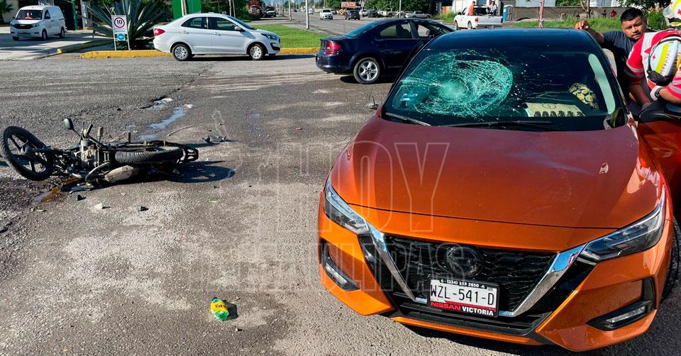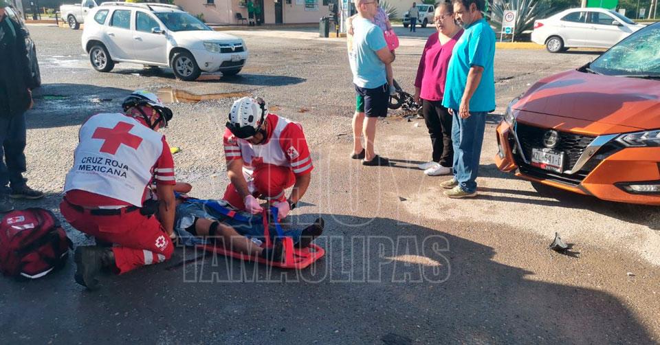 Motociclista sufre probable fractura tras chocar con automóvil en la Victoria–Matamoros