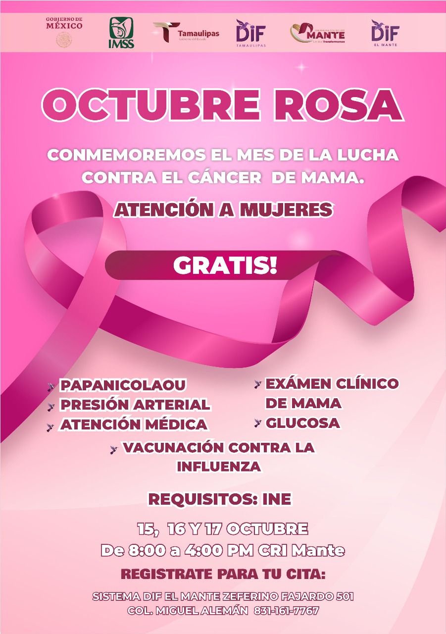 Durante los días 15, 16 y 17 de octubre se realizarán los exámenes de Papanicolaou, exploración de mama, atención médica y detección de glucosa y presión arterial en el módulo que se instalará en el CRI, donde también habrá vacunación contra la influenza para toda la familia.