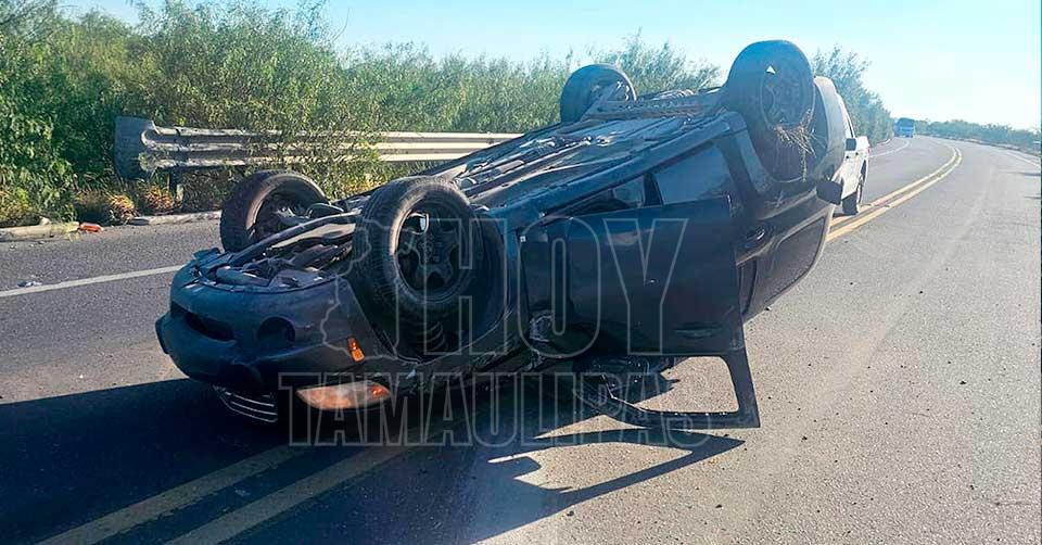 Mujer sale ilesa tras volcadura en Nuevo Laredo