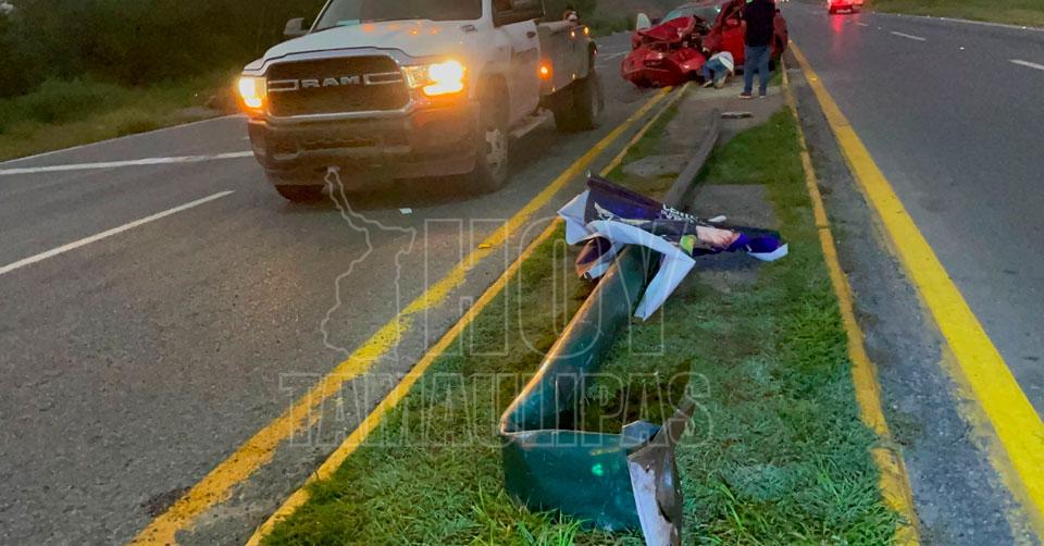 Ciudad Victoria, Tamaulipas. - Un conductor que presuntamente circulaba a exceso de velocidad chocó contra una luminaria, volcó y abandonó su vehículo la mañana de este martes sobre el libramiento Naciones Unidas, a la altura del Fraccionamiento Todos por Tamaulipas en Ciudad Victoria.