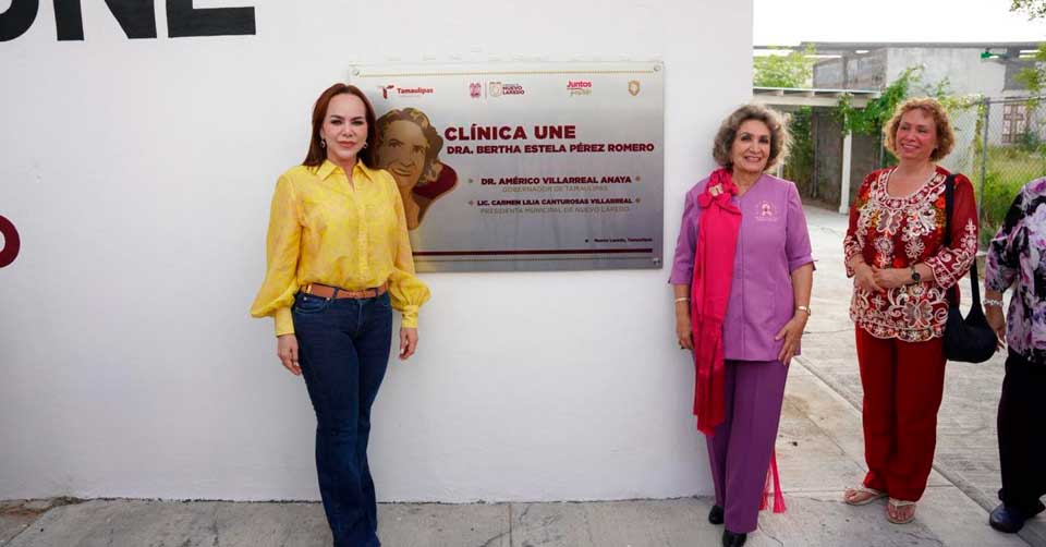 Nuevo Laredo, Tamaulipas.-Con un mensaje de esperanza y compromiso hacia las familias neolaredenses, la presidenta municipal Carmen Lilia Canturosas Villarreal inauguró una nueva Clínica Municipal que lleva por nombre “Dra. Bertha Estela Pérez Romero”, como un homenaje a su trayectoria y a su labor en beneficio de mujeres diagnosticadas con cáncer de mama.