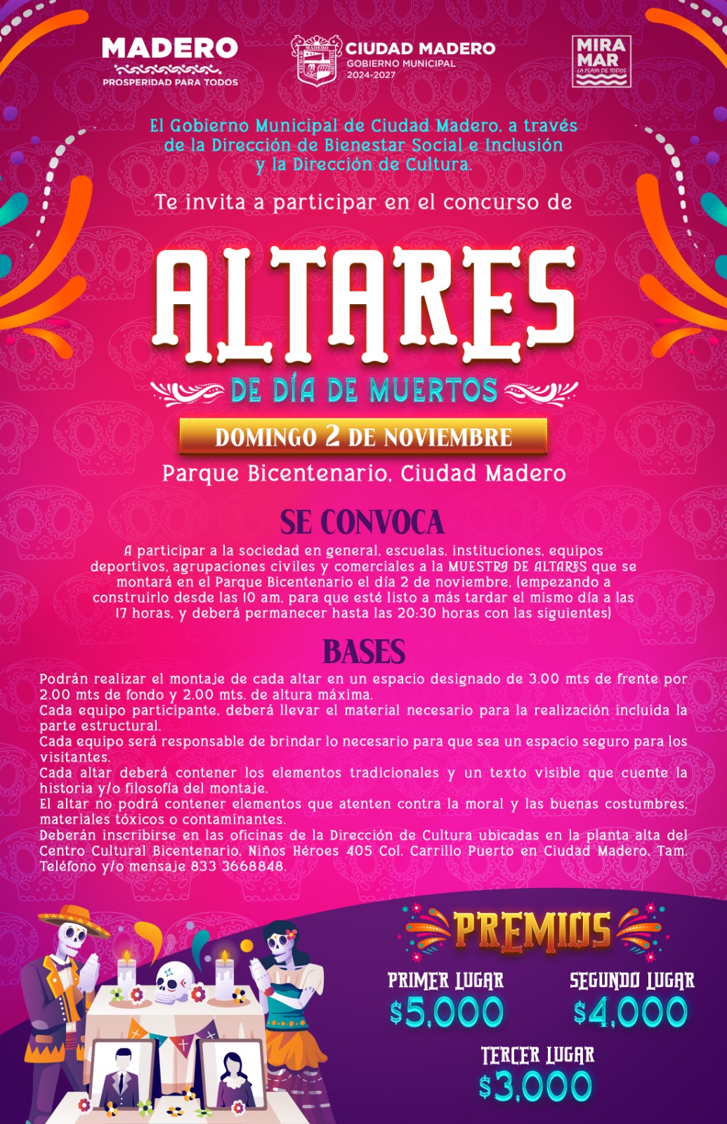 Convocan a inscribirse en concursos para la celebración de Día de Muertos en Ciudad Madero