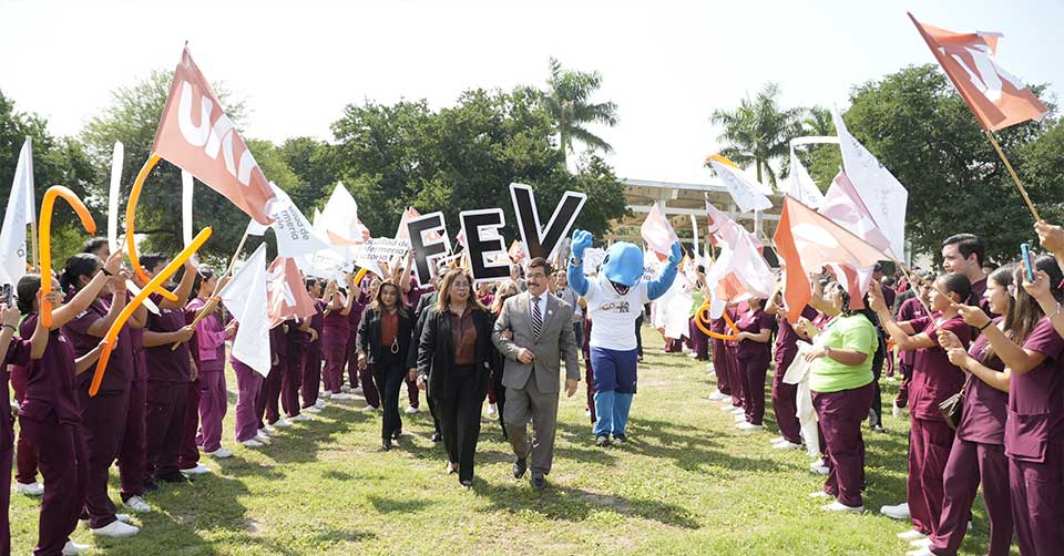 Acompañado por el secretario de Salud, Vicente Joel Hernández Navarro, en representación del gobernador Américo Villarreal Anaya, y la directora de la FEV, Laura Roxana de los Reyes Nieto, el rector puso en marcha las actividades, además de hacer entrega de nuevas áreas que fortalecen la formación integral del estudiantado.