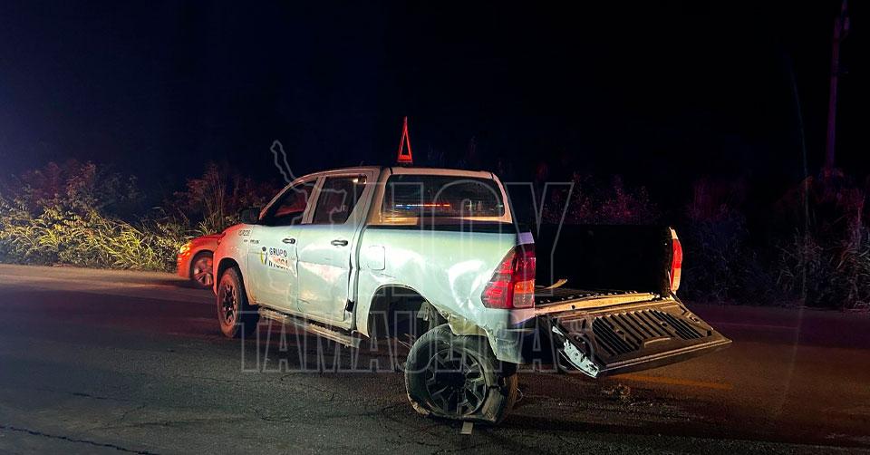 El Mante, Tamaulipas. - Un fuerte accidente entre una camioneta del grupo Hycsa y un vehículo particular se registró la noche de este jueves sobre la carretera Mante–Victoria, en el tramo Mante–Limón, a la altura del cuartel de la Guardia Nacional.