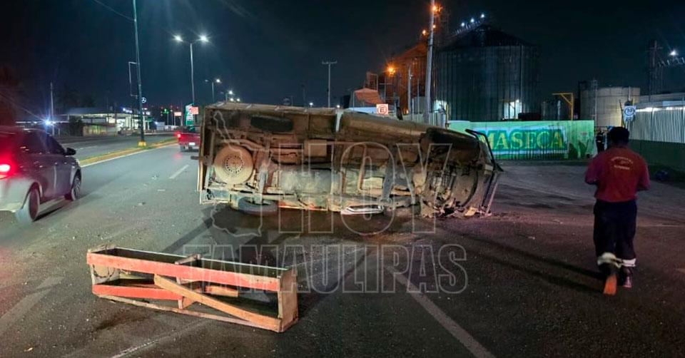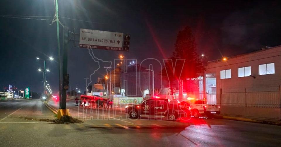 Altamira, Tamaulipas.- De nueva cuenta, el punto conocido como “La Maseca”, sobre la Avenida de la Industria, se convirtió en el escenario de un fuerte accidente vial, luego de que una camioneta se impactara contra un semáforo y volcara durante la madrugada de este domingo.