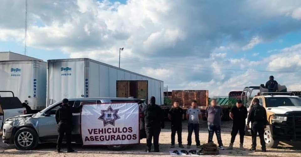 Reynosa, Tamaulipas. - La Guardia Estatal detuvo en Reynosa a cuatro hombres que portaban armas largas y viajaban en un vehículo con reporte de robo en Estados Unidos, durante un operativo de seguridad y vigilancia.