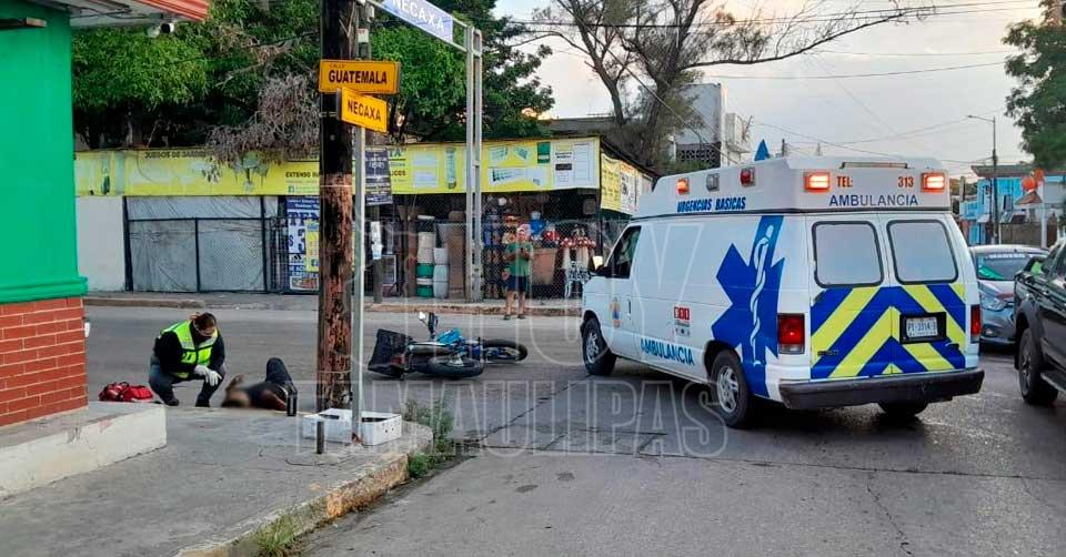 Ciudad Madero, Tamaulipas. - Con distintas lesiones que ameritaron su traslado a un hospital, resultó un motociclista que se precipitó contra el pavimento al chocar con el espejo retrovisor lateral de una camioneta en Ciudad Madero.