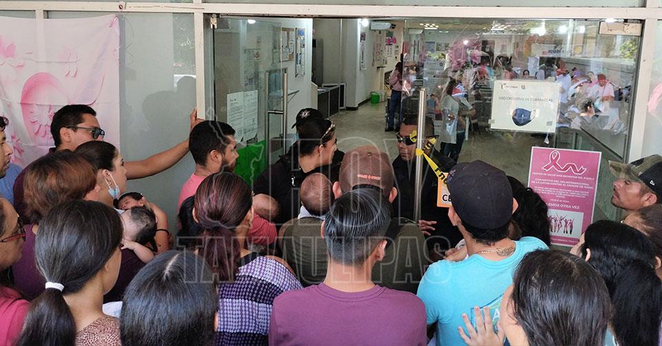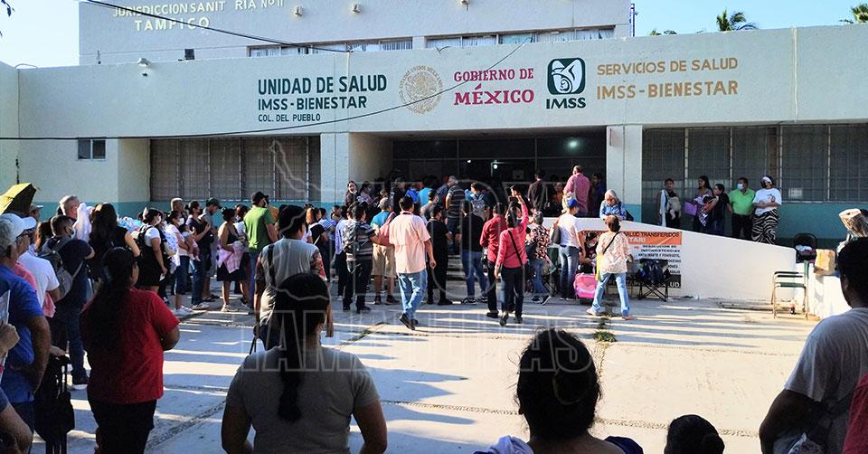 Fila de madres y padres de familia en el exterior del Centro de Salud de Tampico