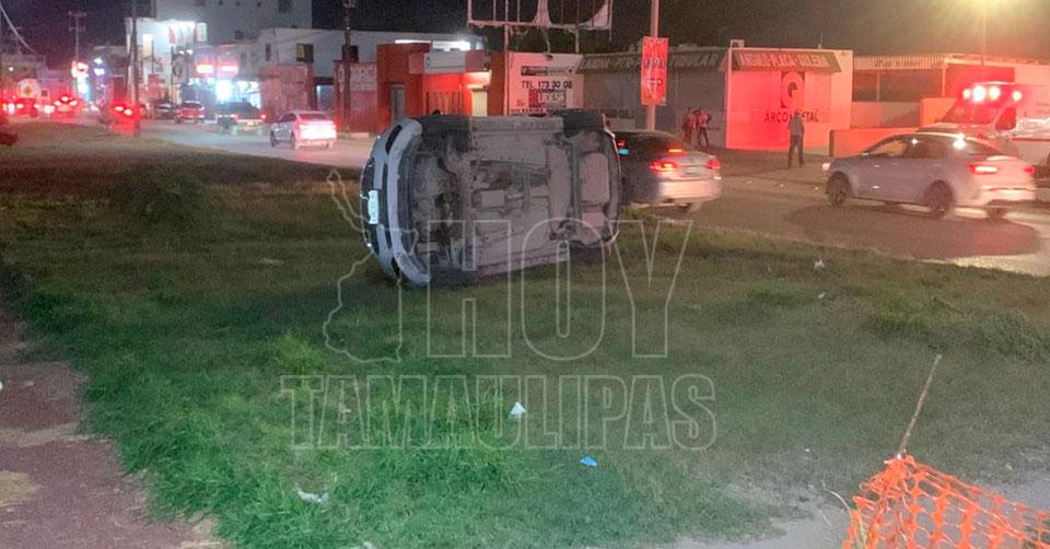 Dos lesionados deja choque y volcadura en Ciudad Victoria