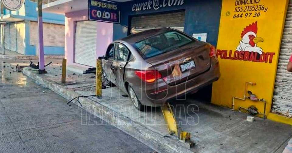 Destrozó su automóvil al estrellarse contra un negocio en Tampico