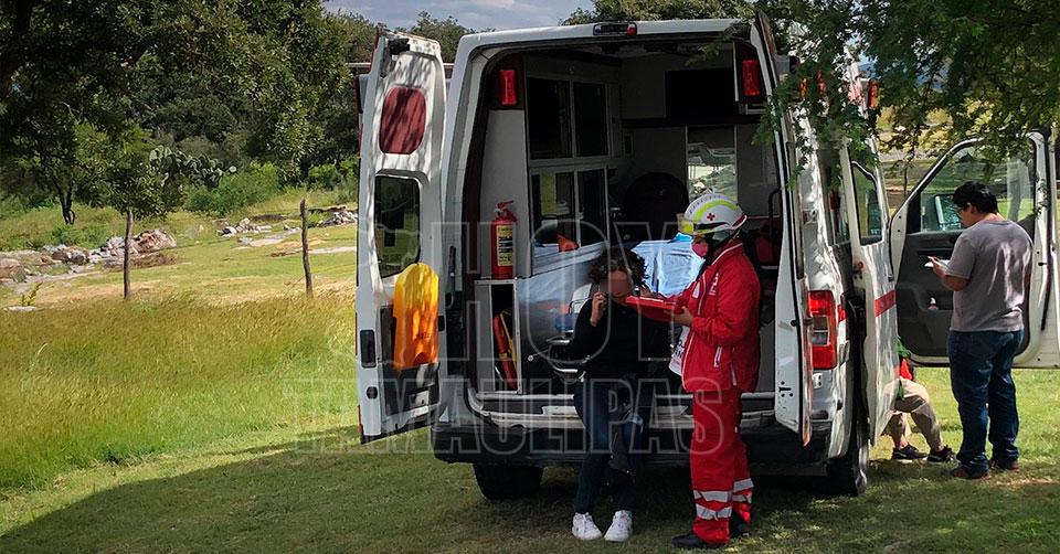 Paramédicos de la Cruz Roja Mexicana brindaron atención prehospitalaria a los tres ocupantes, quienes por fortuna no presentaron lesiones de gravedad.