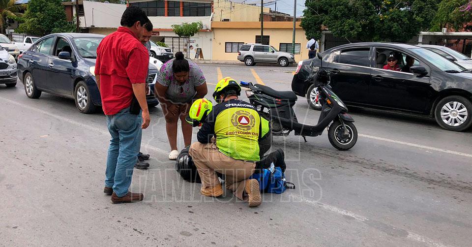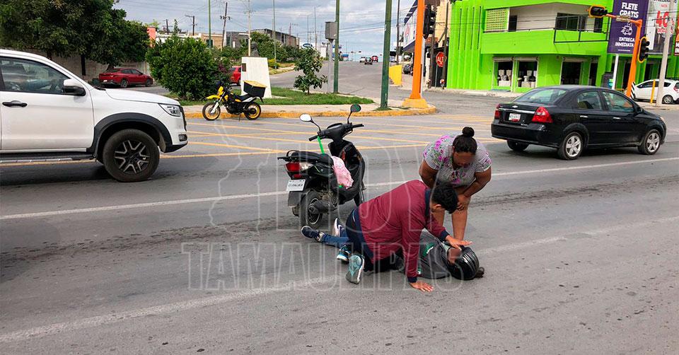 Dos mujeres lesionadas al derrapar en motoneta en el Ciudad Victoria