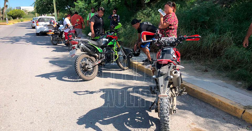 De acuerdo con el reporte, uno de los conductores circulaba la tarde de este martes detrás de un automóvil que frenó de manera repentina; al detenerse también, fue impactado por otro motociclista, lo que provocó que ambos cayeran al pavimento.