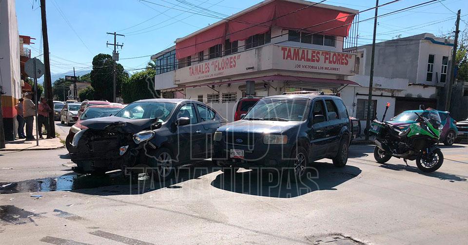 Ciudad Victoria, Tamaulipas. – Dos mujeres resultaron con golpes leves tras protagonizar un accidente vehicular en el cruce del 21 y Alberto Carrera Torres.