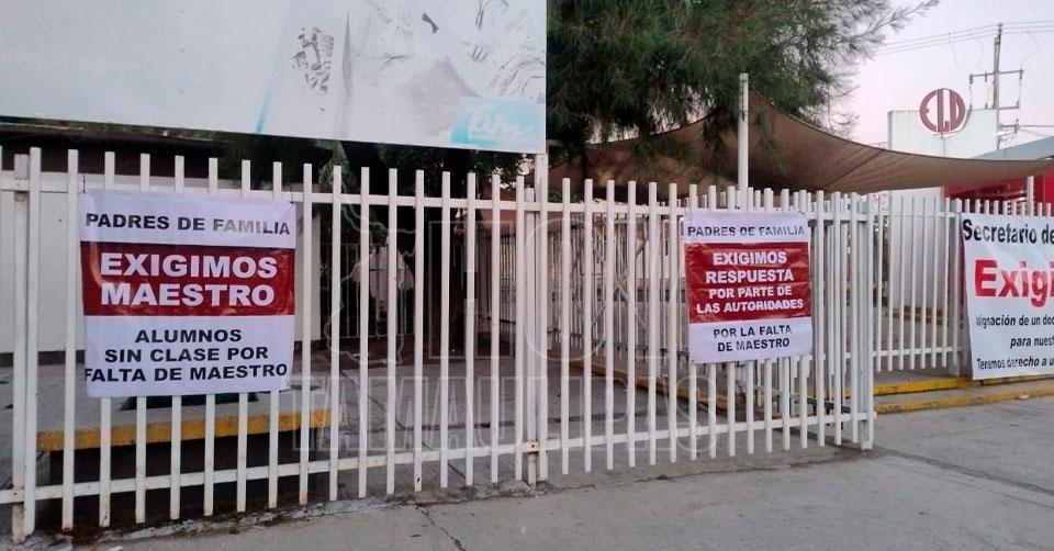 Los inconformes señalaron que desde el 1 de octubre el grupo de tercero “A” se quedó sin docente titular debido a la jubilación del maestro, y desde entonces los alumnos han tenido constantes cambios de profesores.