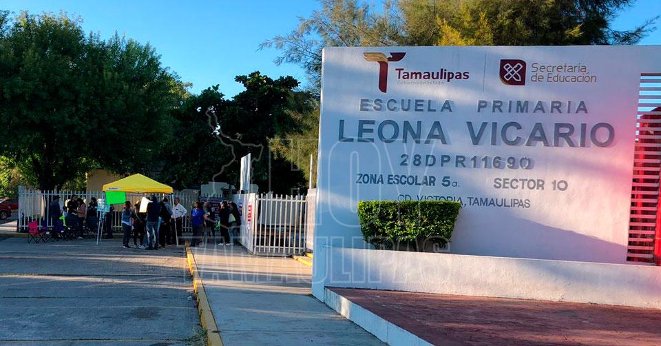 Ciudad Victoria, Tamaulipas. - Padres de familia de la Primaria ‘Leona Vicario’, en Ciudad Victoria, cerraron el plantel y encadenaron los accesos como protesta por la falta de maestros frente a grupo y otras deficiencias que, aseguran, la Secretaría de Educación de Tamaulipas (SET) no ha resuelto, además instalaron un campamento indefinido hasta recibir atención.