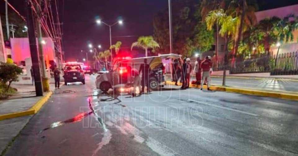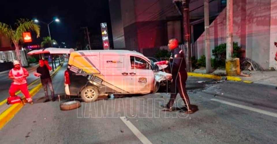 Dos lesionados al estrellarse camioneta contra la base de concreto de un poste en Tampico