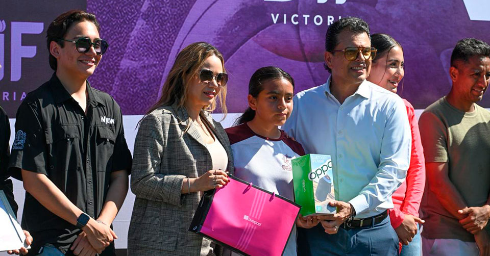 La presidenta del Sistema DIF, Lucy de Gattás, y el alcalde de Victoria, Eduardo Gattás Báez, presidieron la ceremonia de clausura en la cancha Enrique Borja, donde entregaron premio de primer lugar a los equipos, femenil y varonil, de la Secundaria Rafael Ramírez.