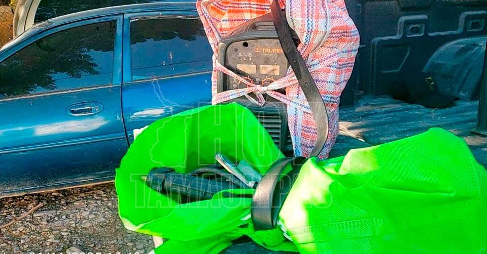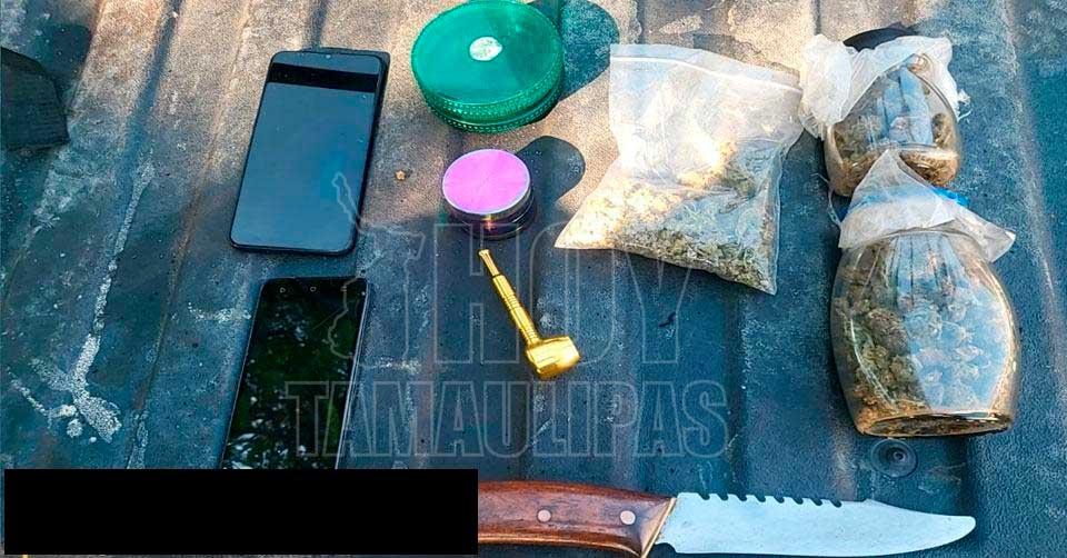 Durante la revisión, los uniformados le encontraron varios frascos con hierba seca con características de marihuana, una pipa, recipientes para su consumo y distribución, además de una máquina para soldar y cables presuntamente robados.