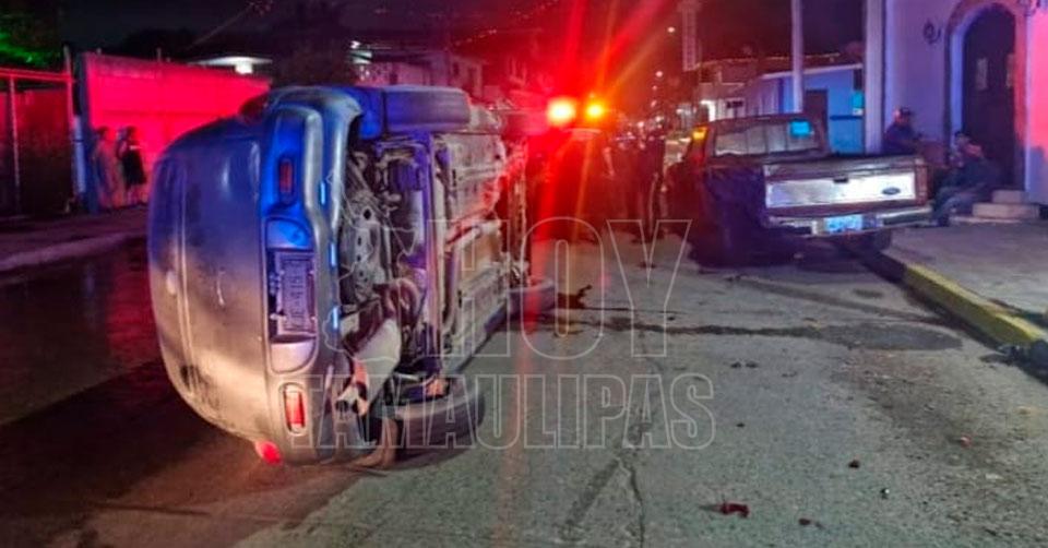 Vuelca automóvil tras chocar contra camioneta estacionada en Tampico
