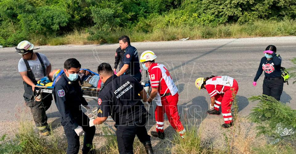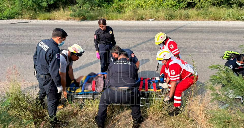 Brigadistas de la base Bomberos Voluntarios de Tamaulipas se sumaron a las acciones y apoyaron a los paramédicos para que el herido fuera trasladado de urgencia a un hospital, en tanto del percance tomaron conocimiento elementos de Tránsito Estatal.