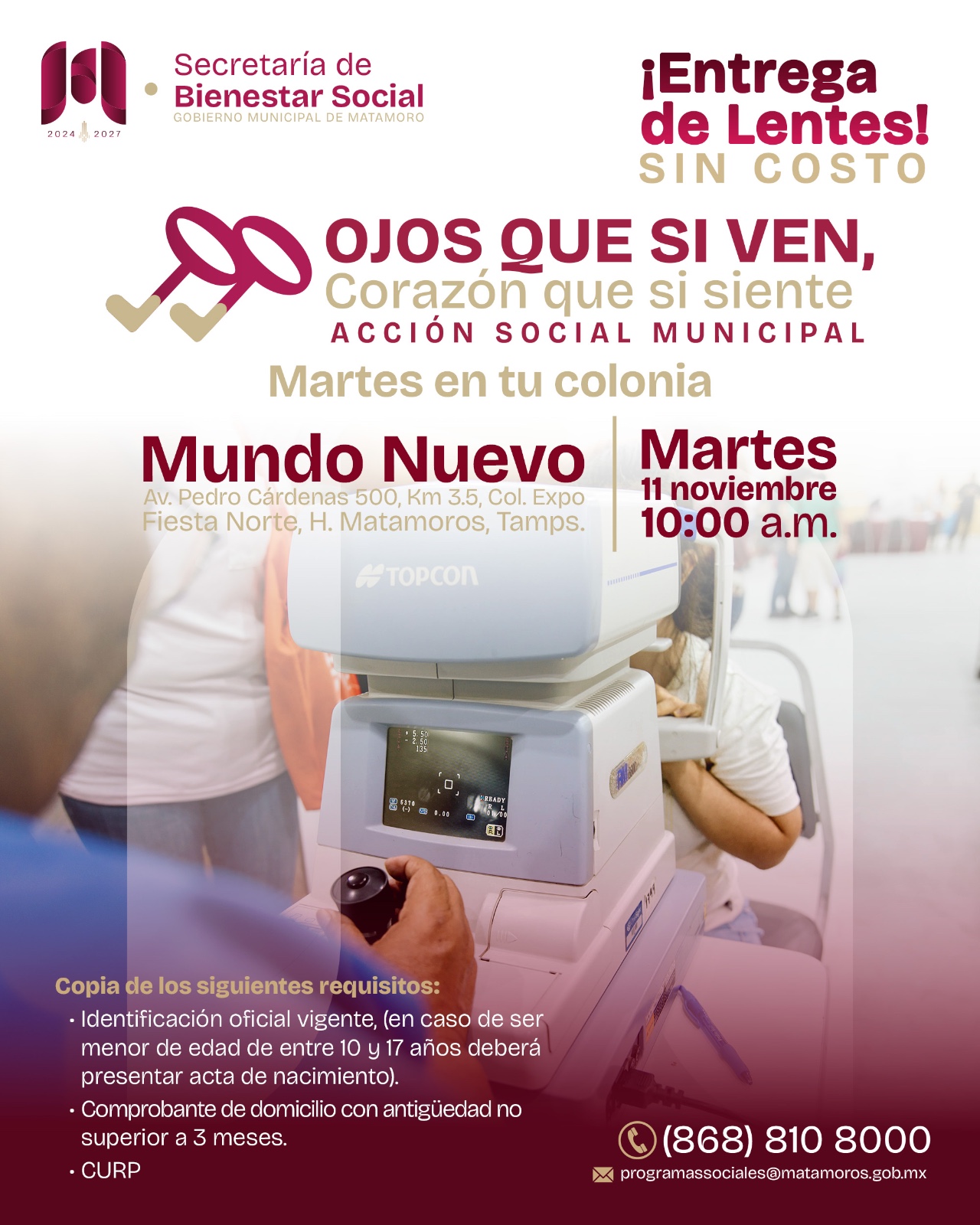 “Ojos que sí ven, corazón que sí siente”: programa municipal mejora la salud visual en Matamoros