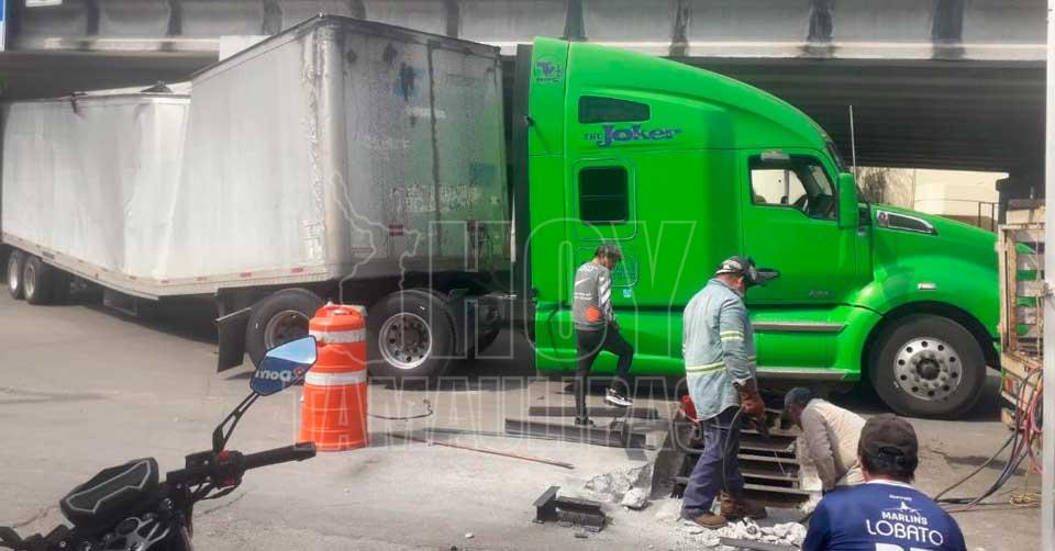 Trailero perdió la "brújula" y atoró su unidad bajo un puente en Tampico