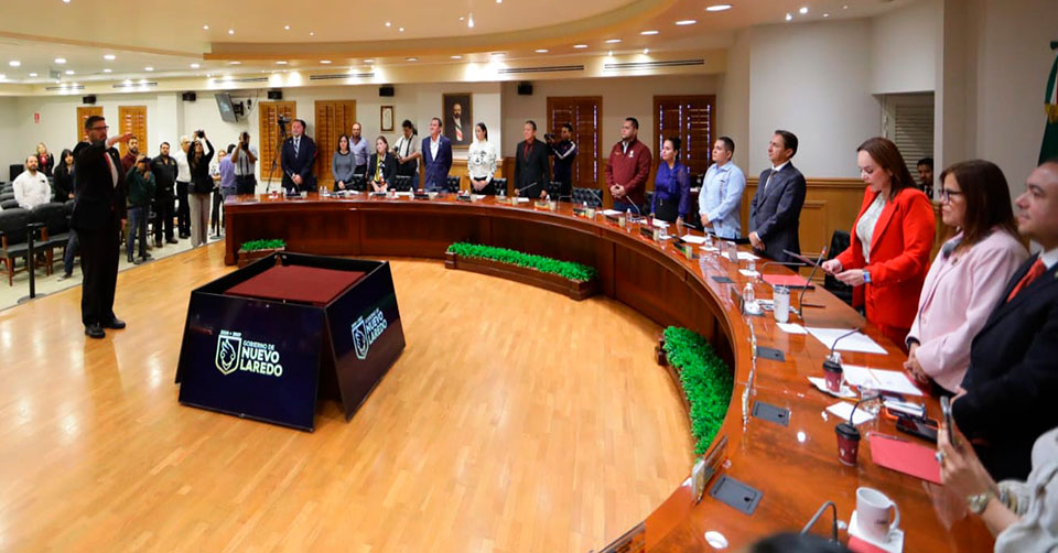 Nuevo Laredo, Tamaulipas. - En sesión de Cabildo, las y los integrantes del Honorable Ayuntamiento de Nuevo Laredo aprobaron por mayoría el nombramiento de Ernesto Ferrara Theriot como nuevo secretario del Ayuntamiento, propuesta presentada por la presidenta municipal Carmen Lilia Canturosas Villarreal, para fortalecer el trabajo del Gobierno Municipal.