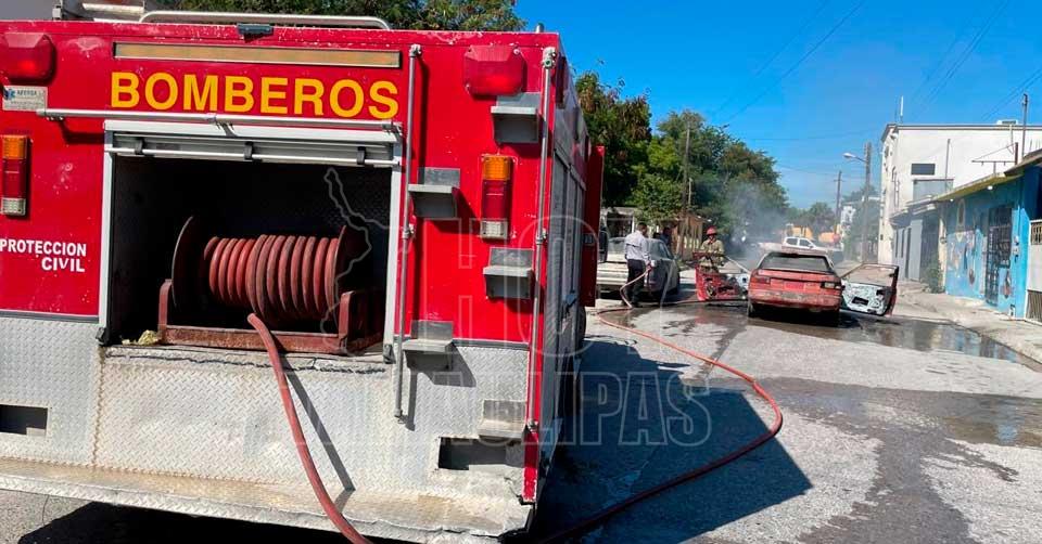 El siniestro ocurrió sobre la calle Zaragoza, entre Morelos y Padre Mier, donde un automóvil Nissan modelo 1990 de color rojo comenzó a arder repentinamente, presuntamente por una falla eléctrica en el sistema interno del vehículo.