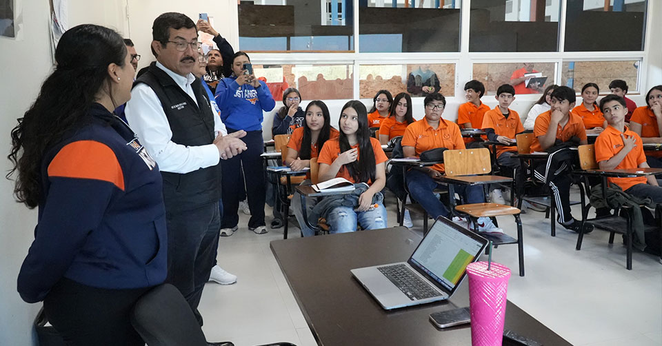 Durante su estancia, el rector conoció al grupo del programa bilingüe, una de las principales fortalezas académicas de la Preparatoria No. 3, que permite a los jóvenes cursar diversas asignaturas en inglés, fortaleciendo sus competencias lingüísticas, comunicativas y de liderazgo desde el nivel medio superior.