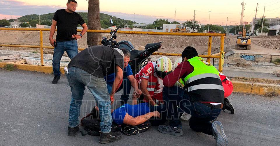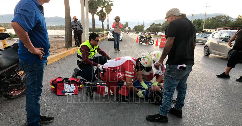 Pareja resulta lesionada tras derrapar en motocicleta en Bulevar de Ciudad Victoria