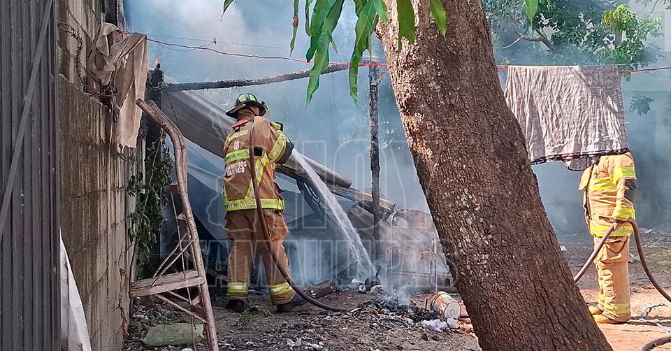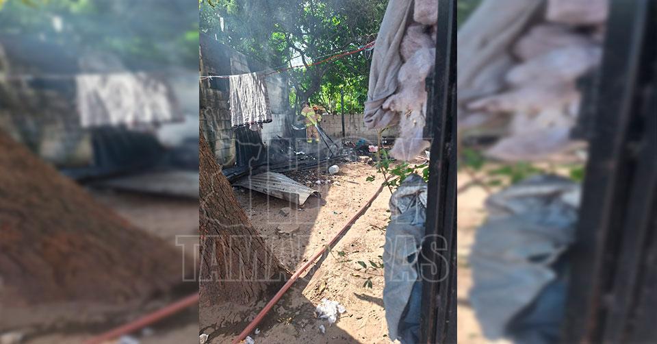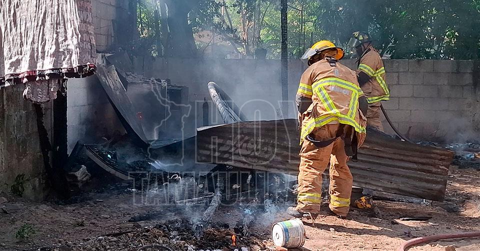 Tampico, Tamaulipas.- Un pequeño cuarto de madera y lámina, donde desde hace aproximadamente medio año vivía una joven pareja, quedó reducido a cenizas tras ser arrasado por un voraz incendio.