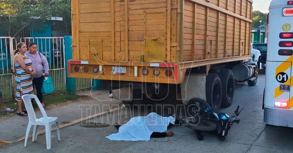 Altamira, Tamaulipas.-Trágica muerte tuvo un motociclista la mañana de este domingo, al impactarse en la parte trasera de un camión que se encontraba estacionado en la localidad de Villa Cuauhtémoc, municipio de Altamira.