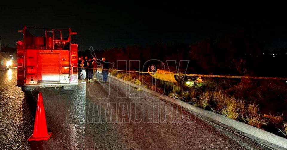 Muere hombre tras aparatosa volcadura en Nuevo Laredo