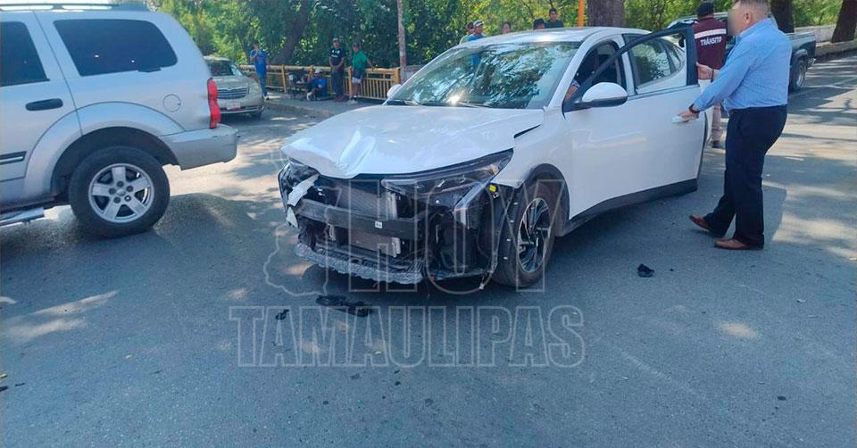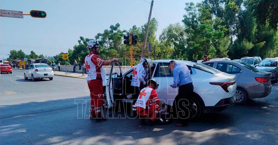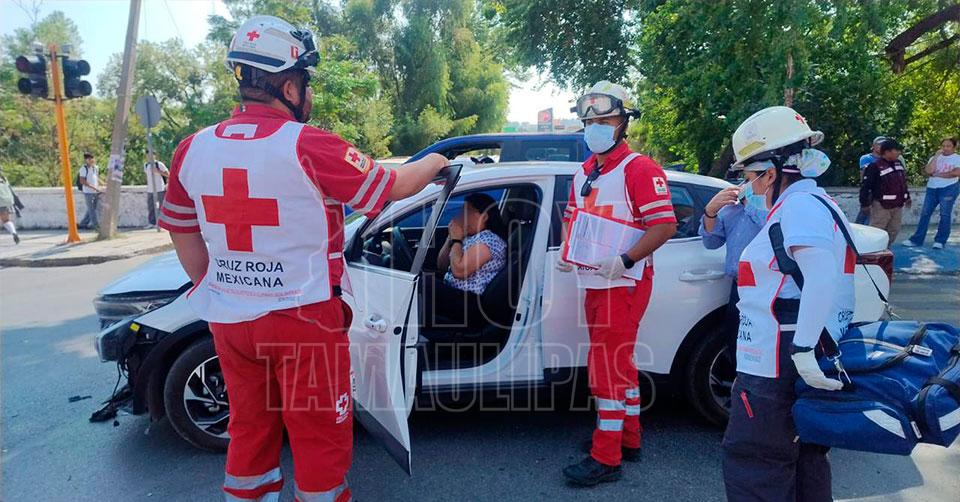 Ciudad Victoria, Tamaulipas. - Una mujer resultó lesionada luego de participar en un choque registrado en el cruce del Ocho Bulevar Praxedis Balboa, donde no respetó la luz roja del semáforo.