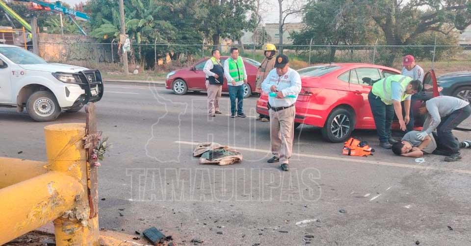 Al llegar los cuerpos de emergencia los tripulantes del automóvil se encontraban sin sentido, por lo que brigadistas de la base Bomberos Voluntarios de Tamaulipas les dieron los primeros auxilios y trasladaron de urgencia al Hospital General de Tampico "Dr Carlos Canseco", mientras que en el sitio la zona fue acordonada para que agentes de la Fiscalía General de Justicia tomaran conocimiento del percance, generándose un desquiciante congestionamiento vehicular que abarcó varios kilómetros.