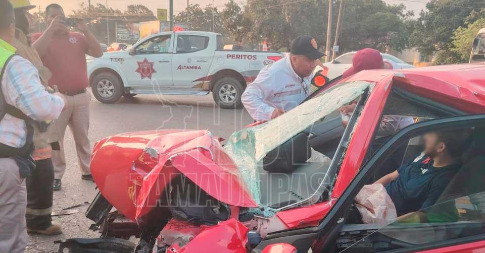 El encontronazo que generó intensa movilización de elementos de Tránsito y cuerpos de emergencia, ocurrió a temprana hora de este jueves en la Avenida de la Industria, pasando el semáforo ubicado del acceso al Fraccionamiento Encinos rumbo al centro de Altamira.