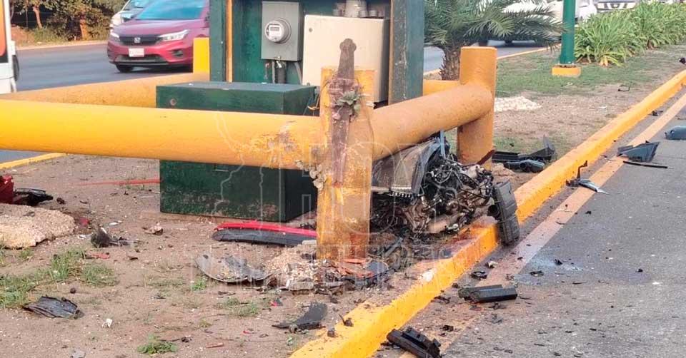 Se especula que el conductor dormitó al volante y se estrelló contra la contención del registro de la CFE, siendo tan fuerte el impacto que el motor del vehículo salió despedido de la carrocería.