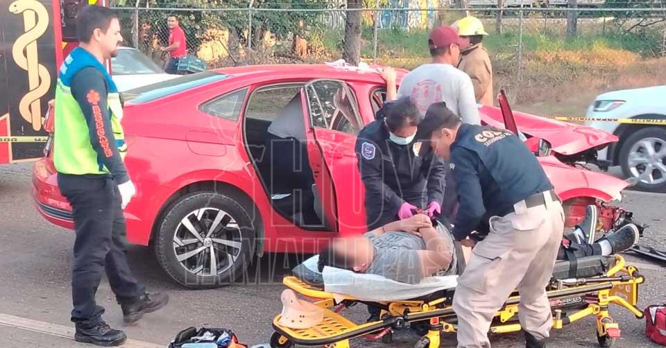 Altamira, Tamaulipas. - Dos sujetos en aparente estado de ebriedad y al parecer amanecidos, sufrieron fuerte percance al estrellar el automóvil que tripulaban contra la contención de un registro de la Comisión Federal de Electricidad (CFE) en Altamira.
