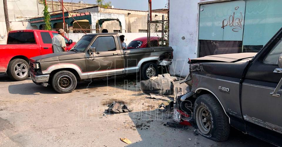 Ciudad Victoria, Tamaulipas. - Un joven de aproximadamente 19 años de edad provocó un fuerte accidente al conducir una camioneta Dodge RAM roja a exceso de velocidad por la calle Carrera y chocar contra dos camionetas Pick-Up estacionadas al girar hacia la calle 8 en Ciudad Victoria.
