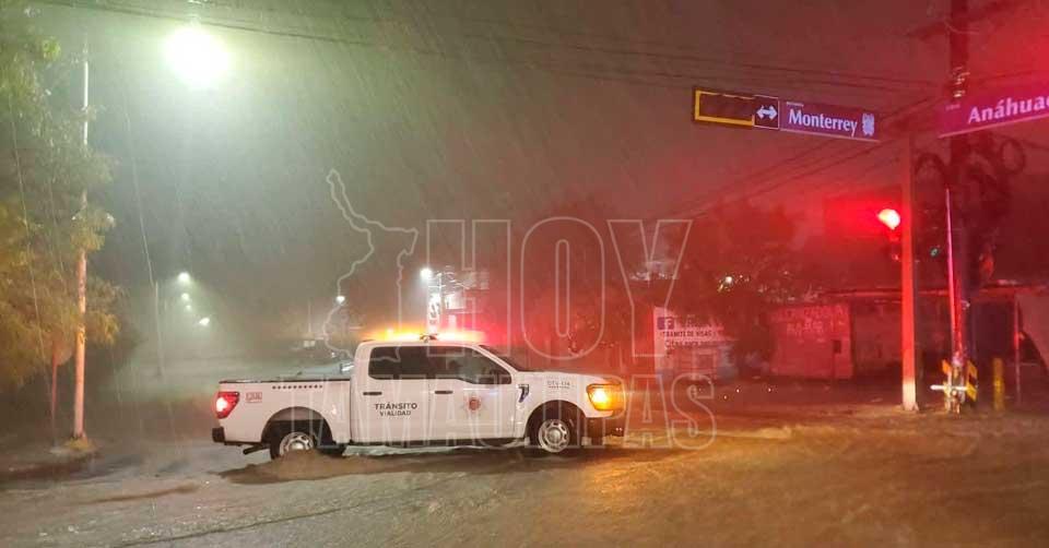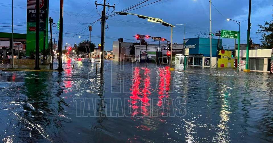 Las autoridades de Protección Civil y Bomberos reportan alerta en el Arroyo de Lomas del Río, inundación en Revolución y Bajío, inundación en Emiliano Zapata de Presa de la Boca a Laguna Madre y el Arroyo desbordado por Iglesias Calderón en la Colonia Pancho Villa.