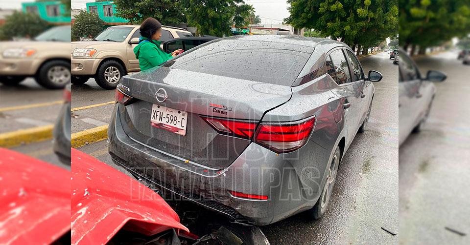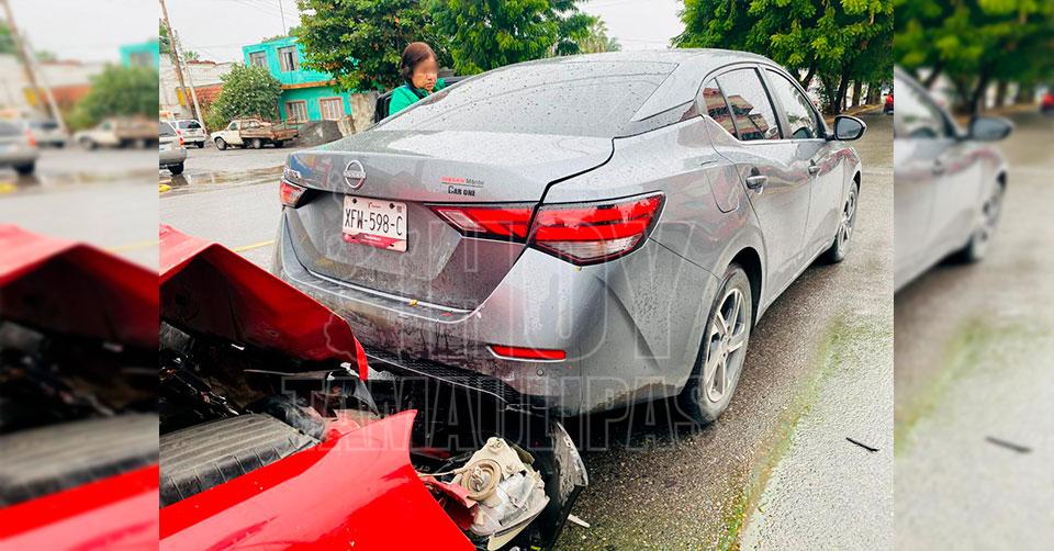 Ciudad Victoria, Tamaulipas. - Un aparatoso choque por alcance registrado en el cruce del 16 y Zacatecas dejó como saldo una mujer con golpes leves.