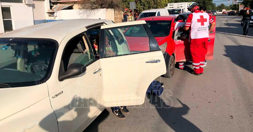 Ciudad Victoria, Tamaulipas. - Un aparatoso accidente ocurrido en el cruce de la calle 27 y Juárez dejó cuantiosos daños materiales y tres personas lesionadas, luego de que el conductor de una camioneta Suzuki SUV, presuntamente en estado de ebriedad, provocó una carambola que terminó con su vehículo volcado.